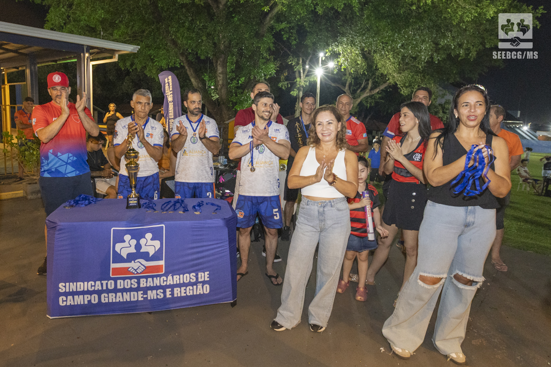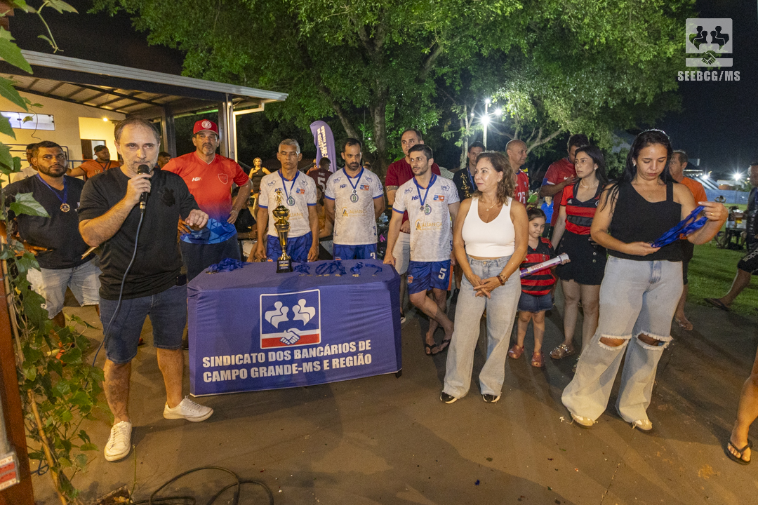 A presidenta do SEEBCG-MS, Neide Rodrigues, parabenizou os participantes e destacou o espírito de união do evento. “Parabéns a todos os atletas que participaram, especialmente àqueles que venceram e demonstraram categoria, capacidade e organização nesta final. O mais importante é que todos vocês vieram para jogar e confraternizar. Desejamos que continuemos assim, e que no ano que vem todos voltem a competir”, destacou. A presidenta ainda ressaltou o investimento realizado para a final: a nova iluminação dos campos de futebol, que recebeu uma padronização para reforçar a visibilidade durante os jogos noturnos.