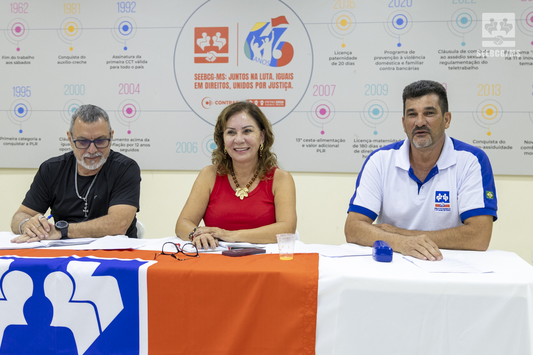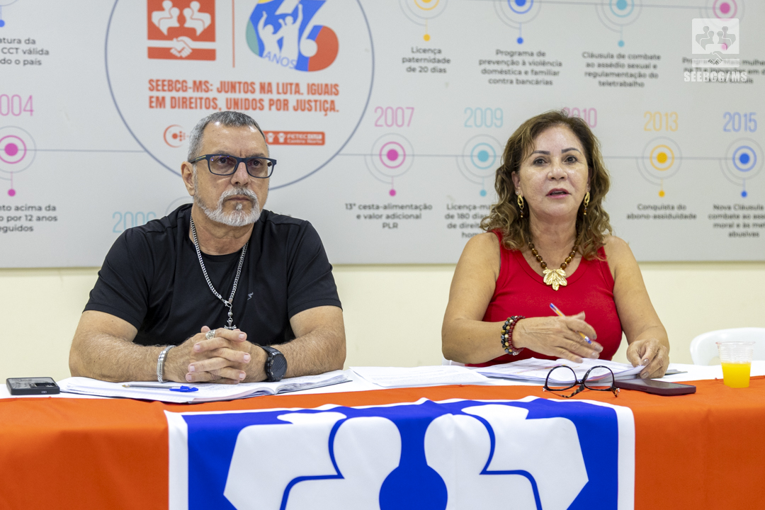 A reunião foi conduzida pela presidenta da entidade sindical, Neide Rodrigues, pelo secretário-geral, Rubens Jorge Alencar, e pelo secretário de Finanças, José dos Santos Brito.