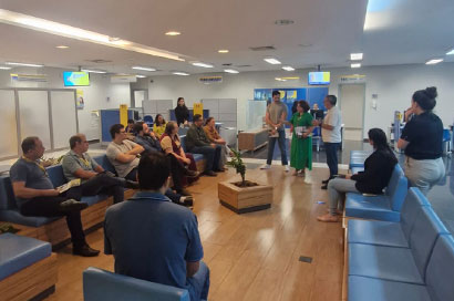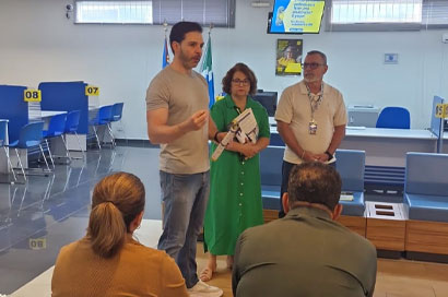Em Campo Grande, os diretores do SEEBCG-MS - Luciana Rodrigues, Rubens Jorge Alencar, Álvaro Marzochi e Marcley Telles -, se reuniram com os empregados e empregadas da agência Tijuca. A pauta central foi a defesa de condições dignas de trabalho e o combate às metas consideradas inatingíveis.