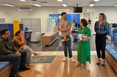 Em Campo Grande, os diretores do SEEBCG-MS - Luciana Rodrigues, Rubens Jorge Alencar, Álvaro Marzochi e Marcley Telles -, se reuniram com os empregados e empregadas da agência Tijuca. A pauta central foi a defesa de condições dignas de trabalho e o combate às metas consideradas inatingíveis.