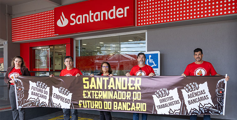 “Estamos aqui para denunciar o abuso do Santander para a sociedade e seus trabalhadores. O banco pratica fraudes trabalhistas, demite e fecha agências, promovendo a exclusão bancária. Nosso protesto é uma resposta direta às fraudes trabalhistas que o banco vem praticando, as quais reduzem salários e benefícios e terceirizam trabalhadores para outras empresas coligadas do grupo”, disse o secretário de Assuntos Jurídicos do sindicato e bancário do Santander, Vicente Cleber Aires Rodrigues.