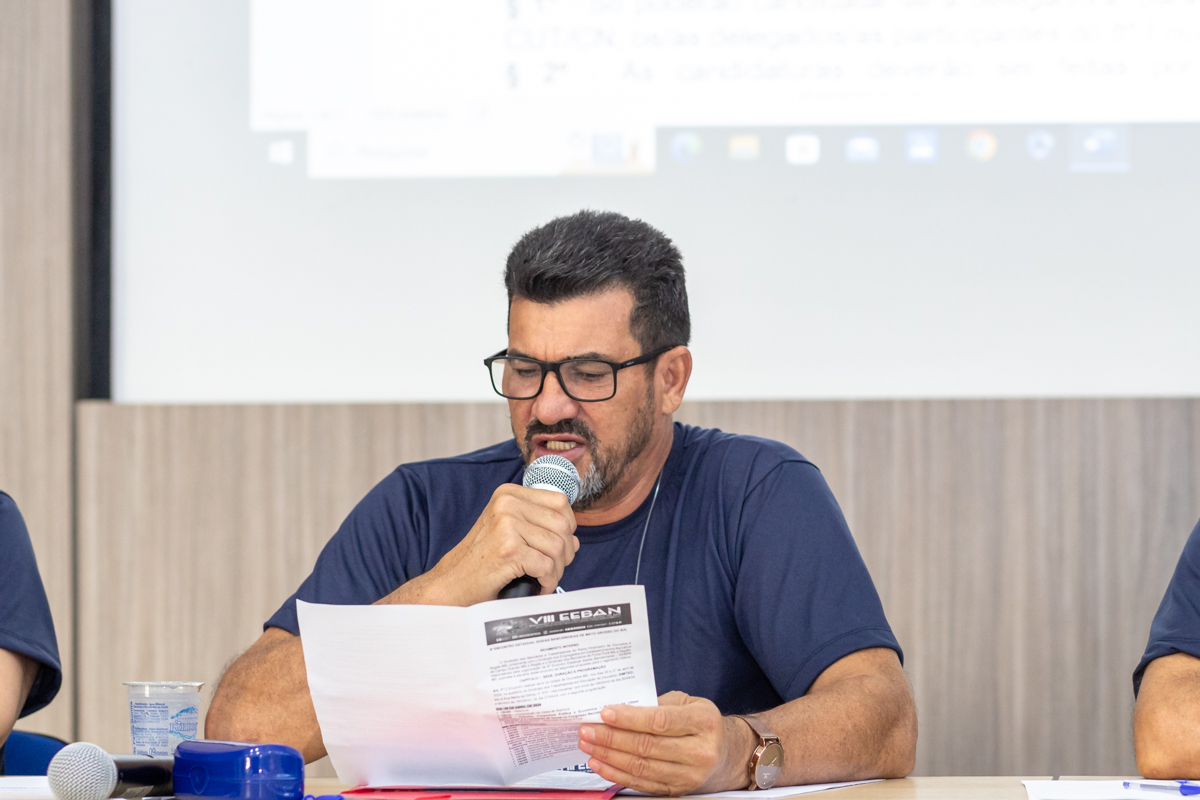 No período da manhã, houve a composição da mesa para o início dos trabalhos do segundo dia de evento para a realização da leitura e aprovação do Regimento Interno. Para isso, a mesa foi integrada pelo vice-presidente do SEEB-Dourados, Raul Lídio Pedroso Verão, o secretário de finanças do SEEBCG-MS, José dos Santos Britto, e a secretária geral do SEEB Ponta Porã, Lirianny Fuchs.