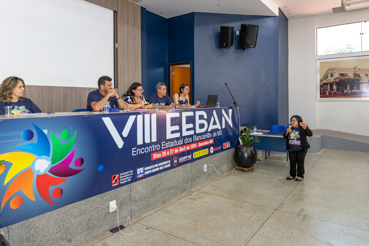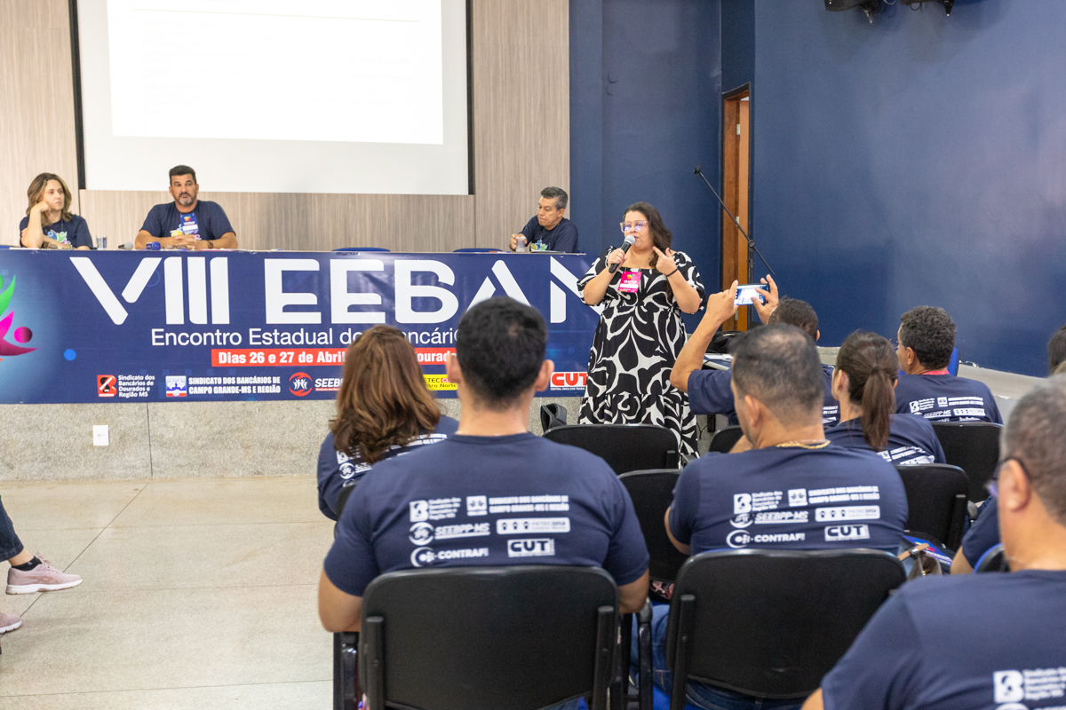 Bancários, bancárias e dirigentes sindicais estão participando do segundo dia do 8º EEBAN/MS (Encontro Estadual dos Bancários de Mato Grosso do Sul), que acontece na cidade de Dourados.