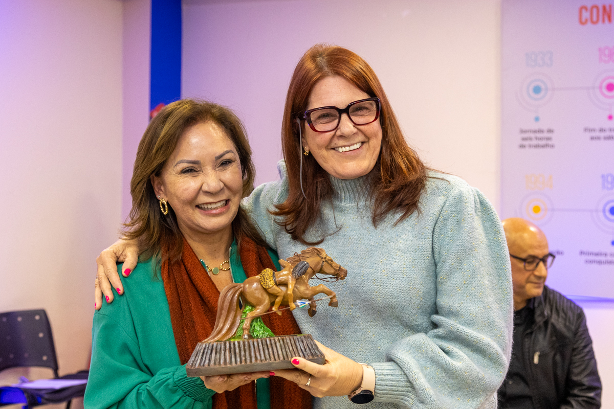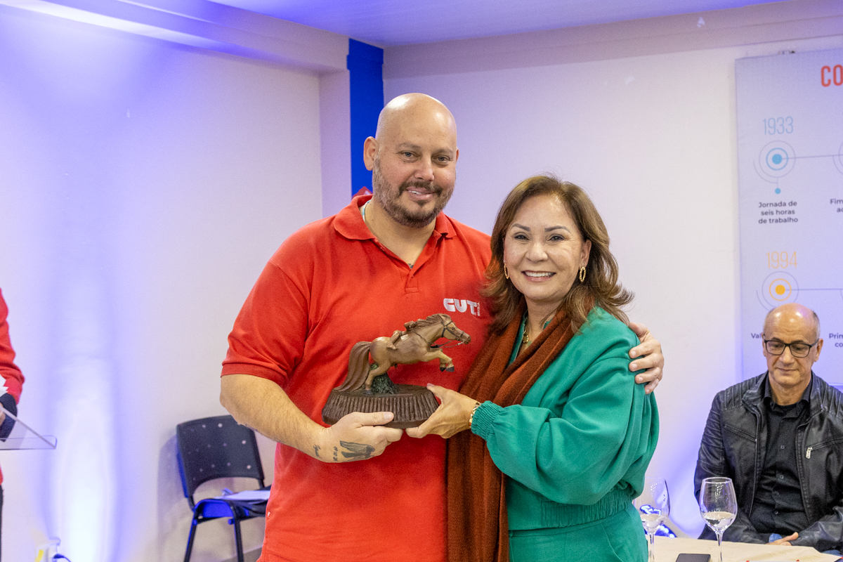 Também foram homenageados com uma réplica do monumento do “Cavaleiro Guaicuru”, que fica no Parque das Nações Indígenas, o deputado estadual Zeca do PT, Rodrigo Britto (presidente da Fetec-CUT/CN), Gustavo Tabatinga (secretário geral da Contraf) e Natalina Rosane Gue (secretária de Aposentados e Seguridade Social do Sindicato dos Bancários de Porto Alegre/RS e Região).