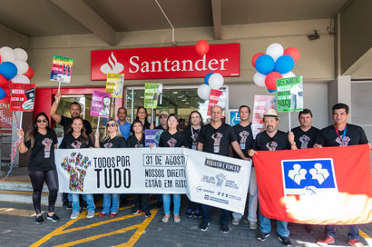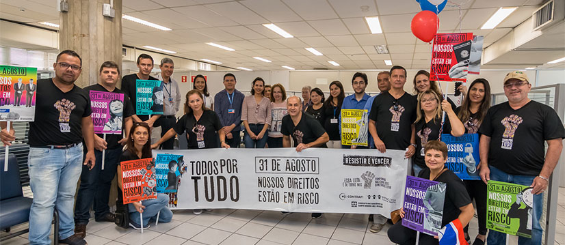 Com o slogan “Todos por Tudo”, o Sindicato dos Bancários de Campo Grande-MS e Região lançou, nesta quinta-feira (21), a Campanha Nacional dos Bancários 2018. O ato teve início às 9h na agência do Bradesco, localizada na esquina das ruas Cândido Mariano com 13 de maio.