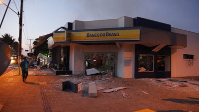 Na madrugada de hoje, a cidade de Pedro Gomes, na região norte do Estado, viveu momentos de terror. Bandidos fortemente armados explodiram a agência do Banco do Brasil, que ficou totalmente destruída.