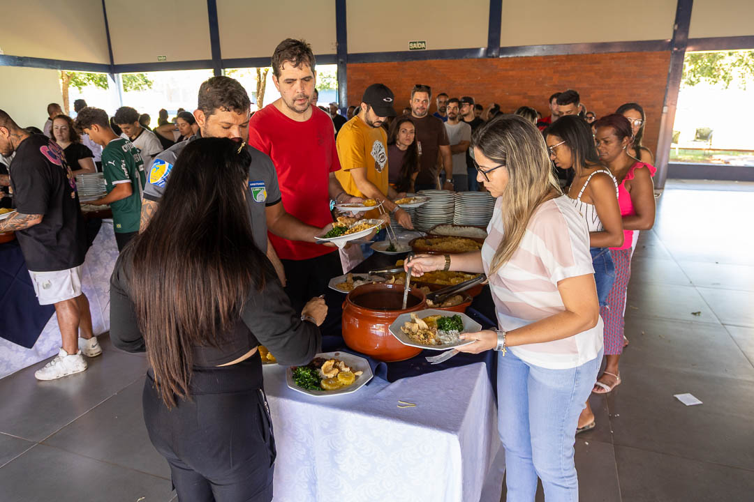 Depois das disputas emocionantes, os bancários e bancárias e seus familiares puderam aproveitar um tempo para confraternizar e desfrutar da deliciosa feijoada. O almoço foi embalado pela banda Calilo Só Por Elas, que animou o público cantando sucessos que conquistaram a todos.
