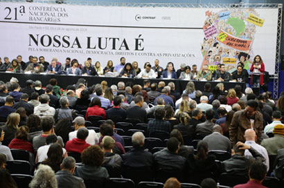 Unidade na luta foi o lema da solenidade de abertura da 21ª Conferência Nacional dos Bancários, na noite de sexta-feira, dia 2. A conferência, que ocorre na Quadra dos Bancários, no centro de São Paulo, e reúne 602 delegados e delegadas de todo o país, debaterá, no sábado (3) e domingo (4), estratégias de mobilização da categoria.