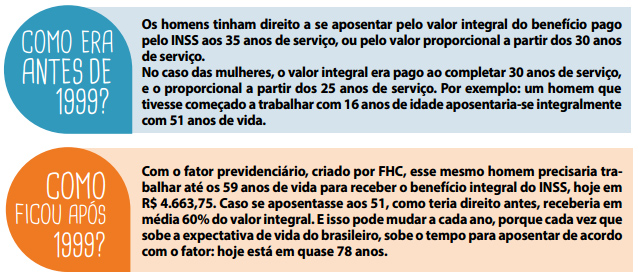O fator previdenciário foi criado em 1999, quando o então presidente Fernando Henrique Cardoso sancionou a lei 9.876, sob a alegação de que era preciso inibir as aposentadorias tidas pelo seu governo como “precoces” e adiar o ingresso dos trabalhadores na Previdência Social.