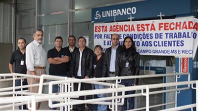 Sindicato dos Bancários de CG/MS fecha a agência do Unibanco