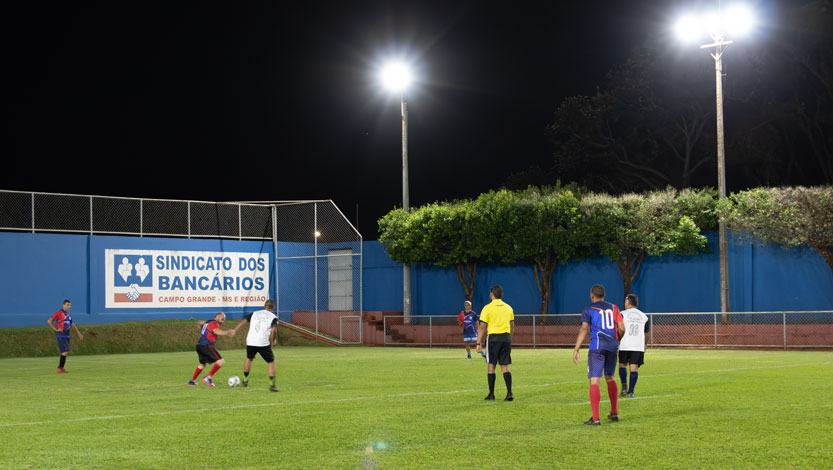 Atenta às necessidades dos seus filiados, a diretoria do Sindicato dos Bancários de Campo Grande-MS e Região decidiu investir na melhoria da iluminação dos campos de futebol do clube de campo, garantindo melhores condições para jogos noturnos.
